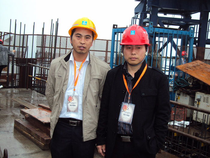 董事长张少荣、公司经理吴贞诚参加厦门世茂大厦液压爬模装置指导工作