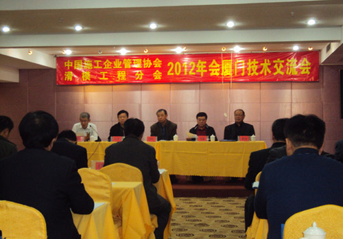 中国施工企业管理协会滑模工程分会2012年技术交流会在厦门顺利召开 公司董事长张少荣、经理吴贞诚出席了2012年厦门滑模技术交流会图为(左往右)吴贞诚经理、张少荣董事长、鼎力滑模机械厂董事长宗寿亮、揽月机械