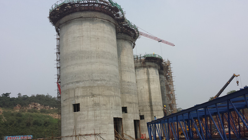我公司承建江苏南京中联水泥有限公司两组两连体直径12m、高28m水泥筒仓滑模工程。 水泥筒仓滑模至7.6m时,整个滑升平台滑