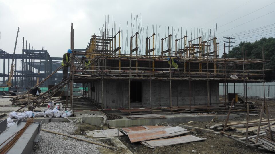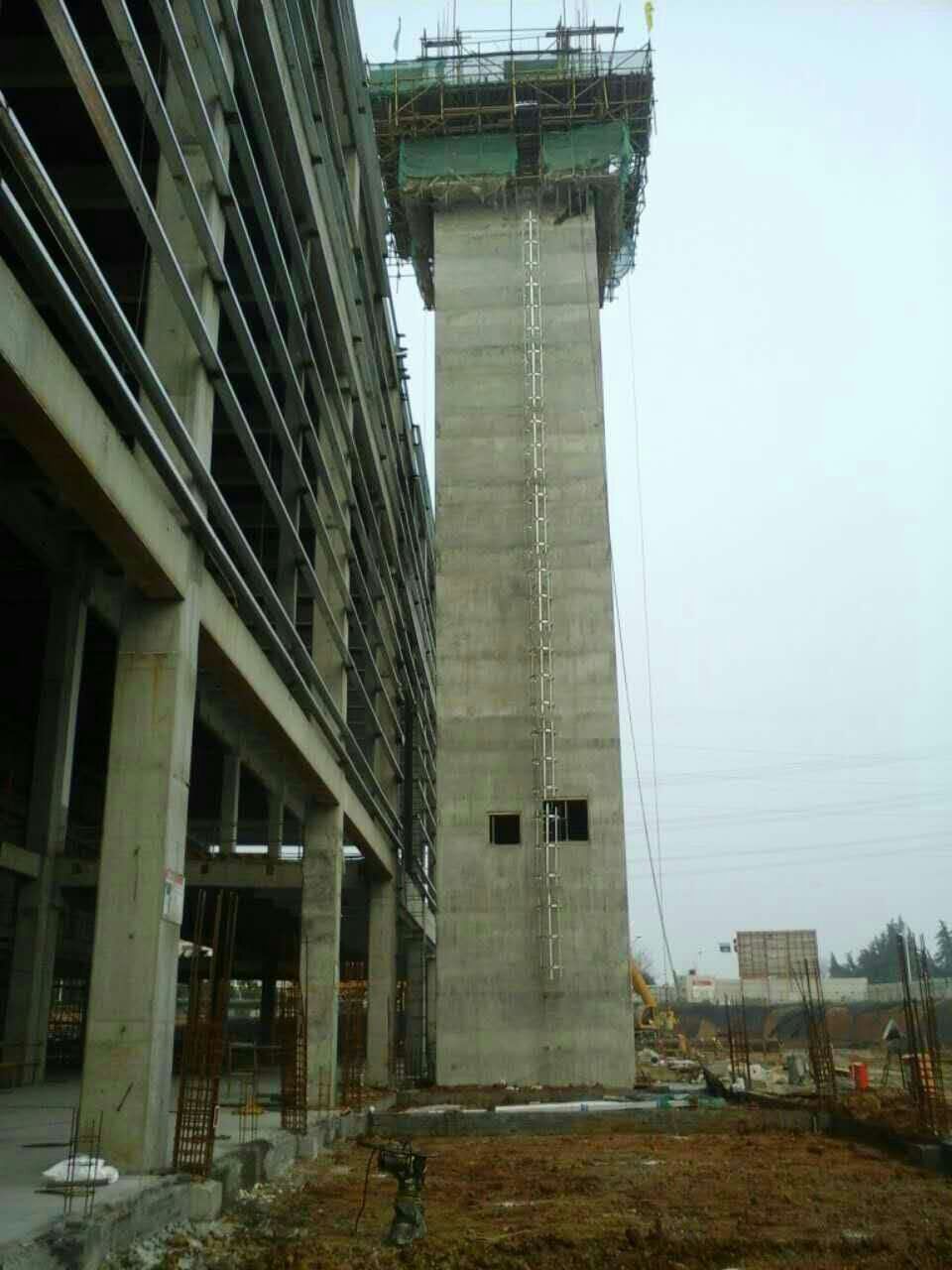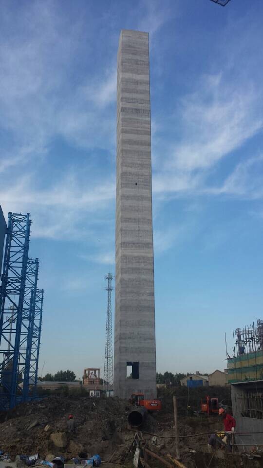 我公司承建山东诸城福田汽车有限公司65m排气烟囱工程,总高度65m,4.5x4.5m方形排气烟囱,现基础已施工完成,筒壁为钢筋混凝土结构,主要采取滑模施工工艺,目前待组装。