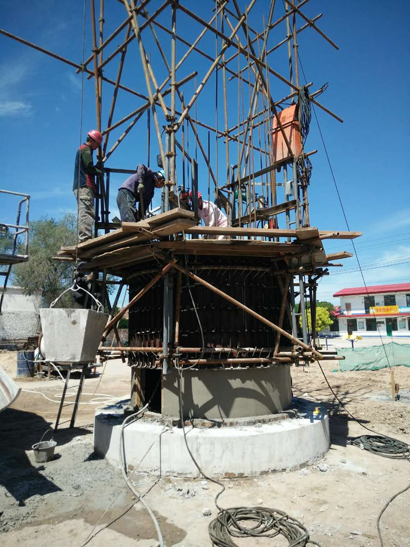 山西晋中市应急抗旱工程100吨倒锥壳水塔基础地板施工现场