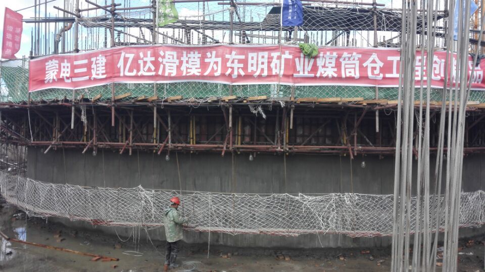 在内蒙古电力勘测设计院的总承包项目,呼伦贝尔东明矿业输煤系统煤仓工程中1个直径22M和2个直径15M,高度为53M的煤筒仓工程由我司负责分包施工。