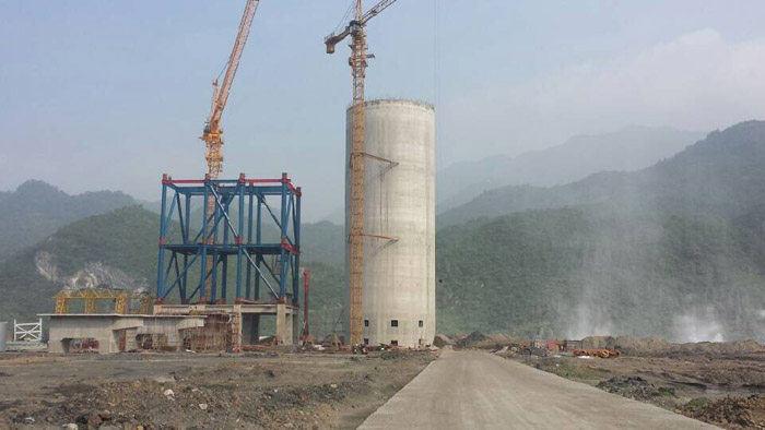 浙江衢州豪龙水泥厂生料均化库滑模施工至顶